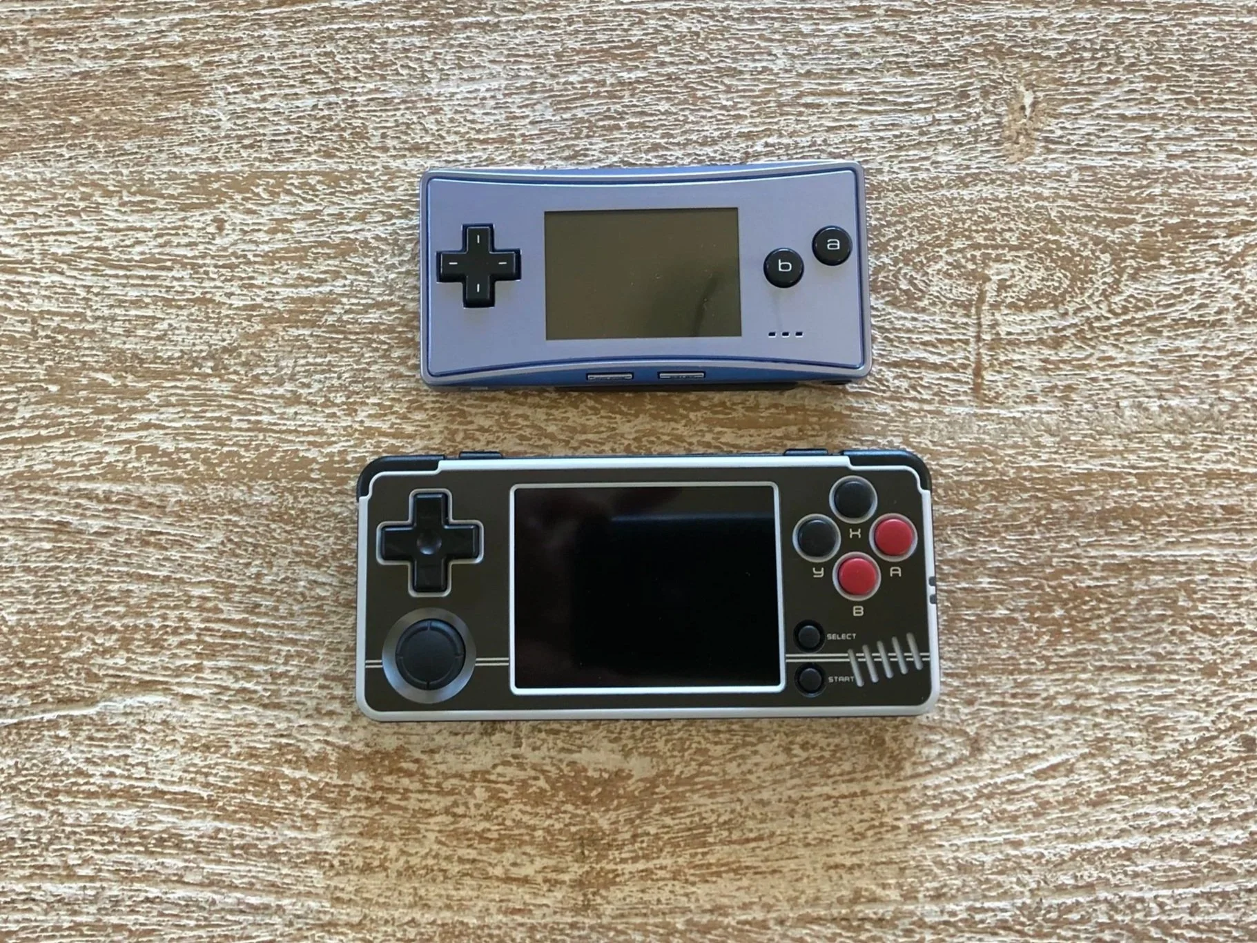 Size comparison: MIYOO A3O versus Game Boy Micro