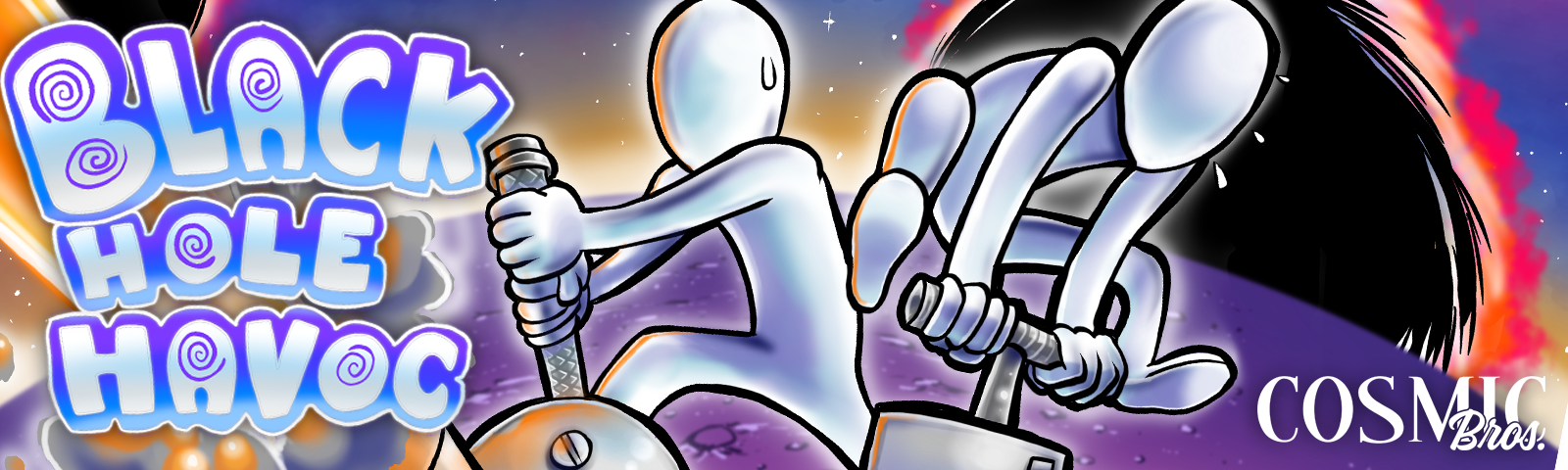 Black Hole Havoc is a single-screen action puzzle game where the objective is to clear the playfield of all black holes by hitting them with another black hole of a similar size. The game was made by Cosmic Bros, a three-man team consisting of Programmer Drew Loebach, Lead Artist Antony Saillard, and Karim Chair handling both Animation and Music. Loebach previously made the Playdate game Jolly Chimp Champ, and apparently is currently working another game (with another team) called Comet.