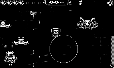 Well, here we go again with another fun game that really only works on the Playdate. CatchaDiablos is a topdown action game about catching monsters by snaring them within circles of salt you draw on the ground. There’s a wide variety of monsters—which are more properly called “Diablos”—to encounter and catch, each with its own pattern of movement and (potentially) attack. Each Diablo also has their own entry in your Pokédex “Diablory”, an index which fills out as you progress through the game.
